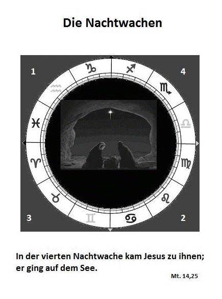 "Der Mensch verläßt das Paradies, und dann wird es zum ersten Mal dunkel......Die erste Nachtwache, so heißt es, ist dadurch gekennzeichnet, daß der Esel schreit. In der zweiten Nachtwache heulen und bellen die Hunde. In der dritten Nachtwache haben der Mann und die Frau das Gespräch miteinander, und das Kind trinkt an der Brust der Mutter. Und es wird gesagt, bei jeder Nachtwache brüllt Gott wie ein Löwe."