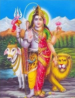 Beim Ardhanrishvara befindet sich der Lotus in der linken Hand, auf der Seite der Shakti. Astrologisch betrachtet ist dies auf der Höhe des Tierkreiszeichens Skorpion, dem seit dem Altertum der Adler (Johannesevangelium) zugeordnet wurde. Dies meint die geistige Wandlung, die mit dem göttlichen Segen aus dem jenseitigen Bereich hinüber ins Diesseits einhergeht: die Überwindung des Herrschers der Welt, bzw. das Lüften des Schleiers der Maya. Das Denken des Menschen bleibt solange unfruchtbar, bis es gelingt den inspirativen Zugang aus dem 4. Quadranten freizulegen und zwar zuerst über das noch diffuse Empfinden (Krebs) des Stimmigen oder Unstimmigen. Der Zugang zur inneren Wahrheit und Wahrhaftigkeit ist anfänglich von fremden Vorstellungen, Gedanken, Glaubenskonzepten oder auch unangebrachtem Wunschdenken überlagert.